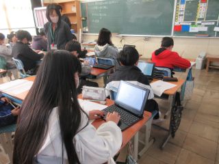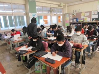 今日の2限目に、6年生が四日市市教育委員会作成の算数総括テストをしました。小学校での算数の学習内容が身に付いているかの確かめです。問題を解き、タブレットの解答欄に入力して送信すると、解答結果と正答がすぐにわかり、子ども達も自分の理解できていないところを確認し、直しをしていました。