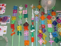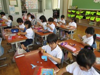 図工の授業では、クレパスで絵を描いたり、色紙を切ってきれいな飾りを作ったり、みんな楽しく活動しています。