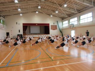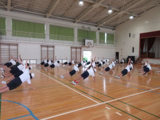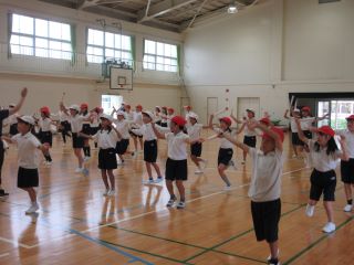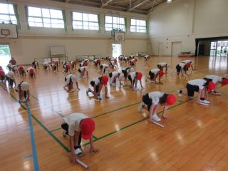 1限目に5・6年生が体育館で運動会の練習をしていました。表現の一人技で、カウントに合わせて、技を確認していました。「1・2・3・4・・・」と心のなかでリズムを刻みながら、頑張って取り組んでいました。