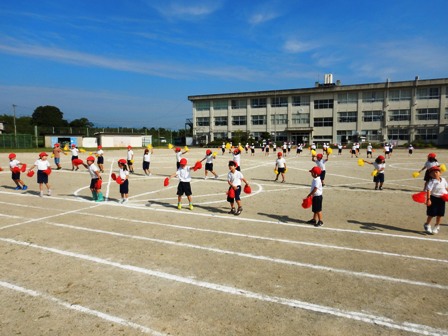 運動会まであと少しとなりました。今日も1,2年生は練習を頑張っています。