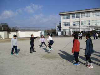 昨夜の雨で運動場の状態が心配でしたが、暖かい日差しの中、運動場も乾き、今日からなわとびタイムが始まりました。2月13日までの月曜日(雨天時等は金曜日)の20分休みは、8の字跳びの記録会を行います。どの学年も、「がんばれ!」「落ち着いて。」「絶対跳べるよ。」など、お互いに励まし合いながら、縄を跳ぶ人も回す人も集中して取り組んでいました。