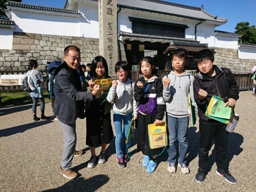 ボランティアガイドさんと一緒に、班別分散学習に出発しました。4時に清水寺に集合します。