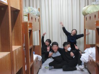一日の活動を終え、お風呂に入ったり、しおりに振り返りを書いたりしています。部屋でのレクも楽しそうです。21時に就寝となります。「おやすみなさい。」