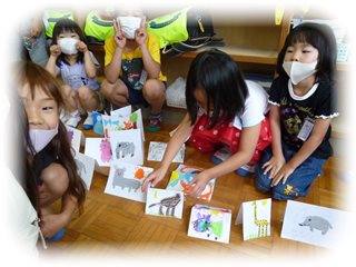 1年A組の教室に,動物たちがのびのび暮らす楽しい町ができました。