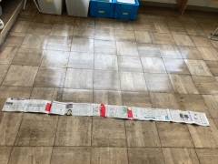新聞紙1枚を広げると80cmということで,新聞紙を2枚半をくっつけて「社会的距離」と言われる2mをつくりました。