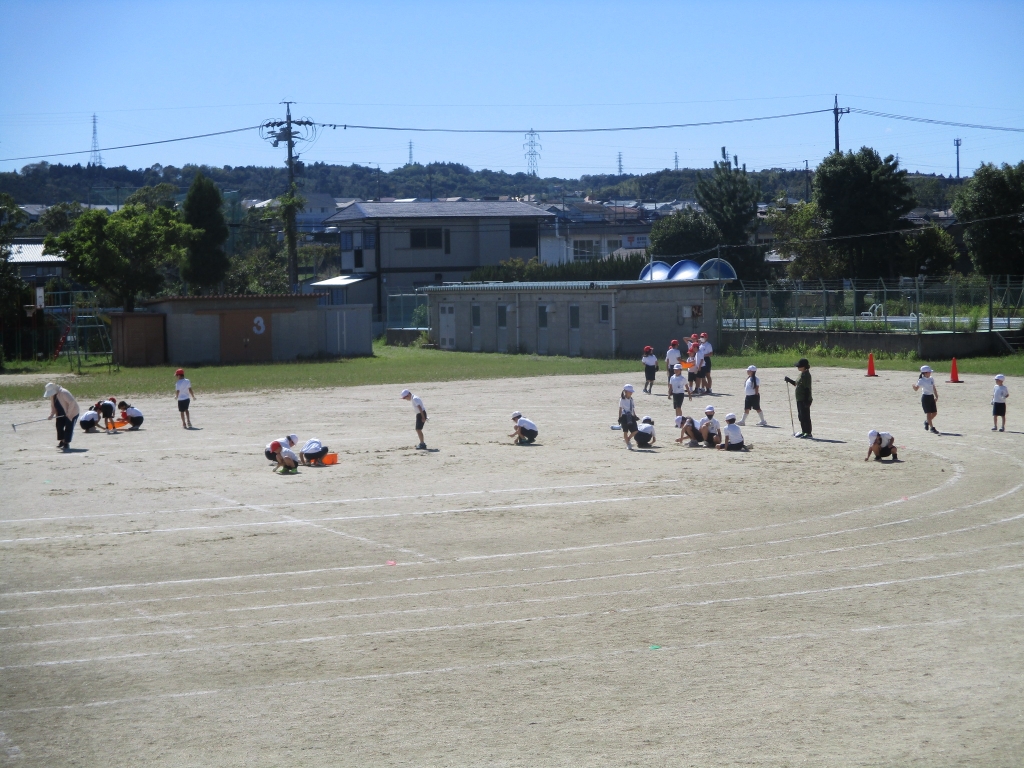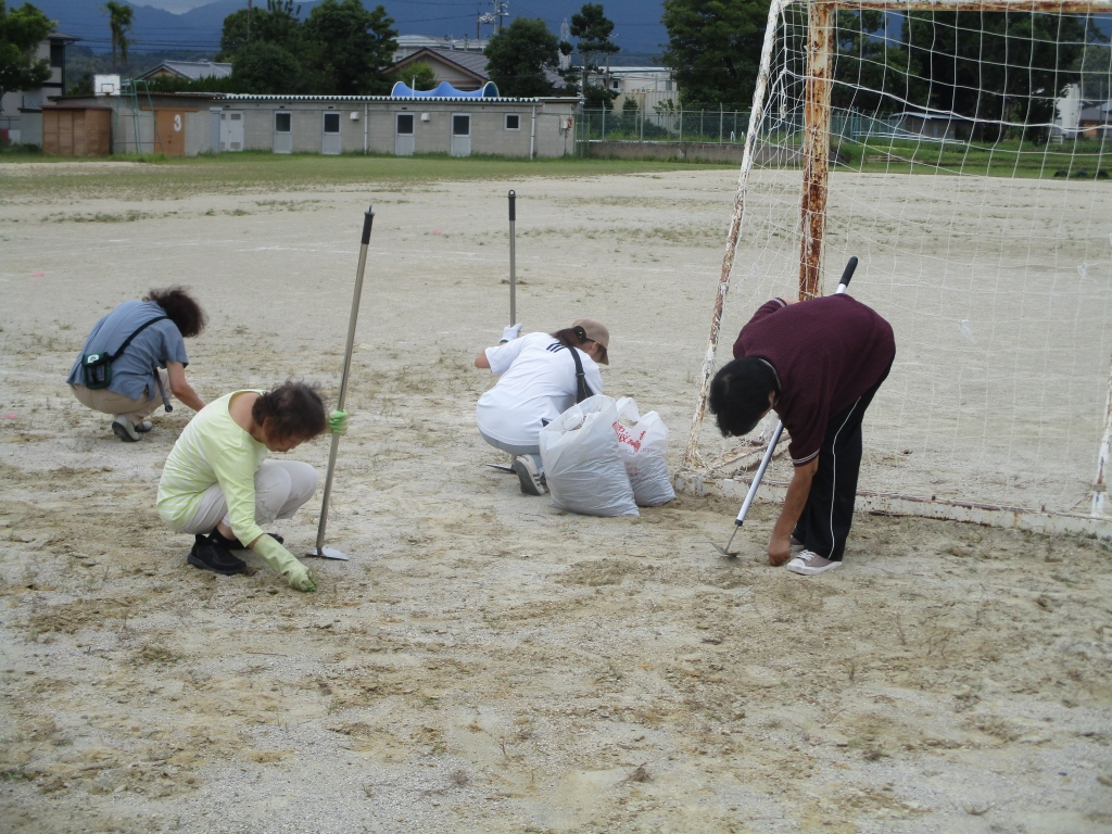 2年生と5年生が運動場の草取りをしました。ほかの学年も別の日にきょうだい学年で協力して草を取りました。