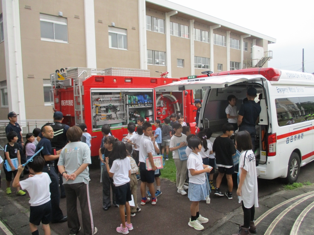 四日市市中消防署西分署の方に来ていただき、3年生を対象に防災教室を実施しました。