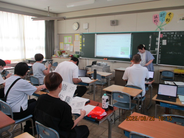 この夏季休業日中に職員がそれぞれに参加した教育委員会主催の研修会等で学んだことを還流しました。