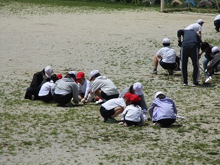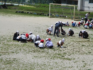 子どもたちにとっては、草が生えているところは、虫や植物と出会える格好の遊び場ですが、運動場が緑の芝生状態になるのは避けたいところです。