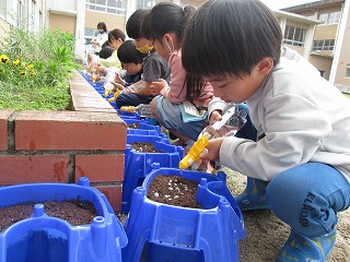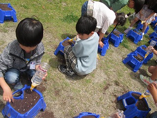 「色は黒色、さわってみるとざらざら、大きさは小指のつめくらい、においは土みたい」など子どもたちの感じたことをそれぞれ記録しました。