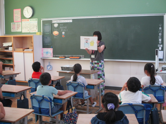 2年生の教室で栄養教諭から朝ご飯の大切さを学ぶ授業を実施しました。