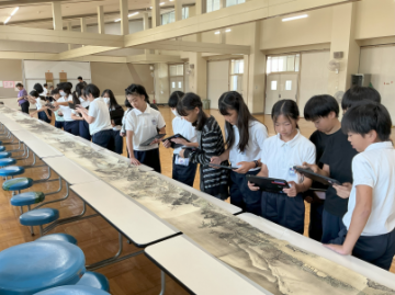 一人では雪舟にかなわないけれど、みんなで協力して「桜小水墨画長巻」を描きました。