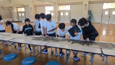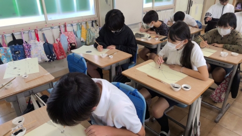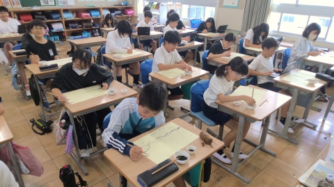 墨の芸術家でもある校長先生がゲストティーチャーとして来てくれました。