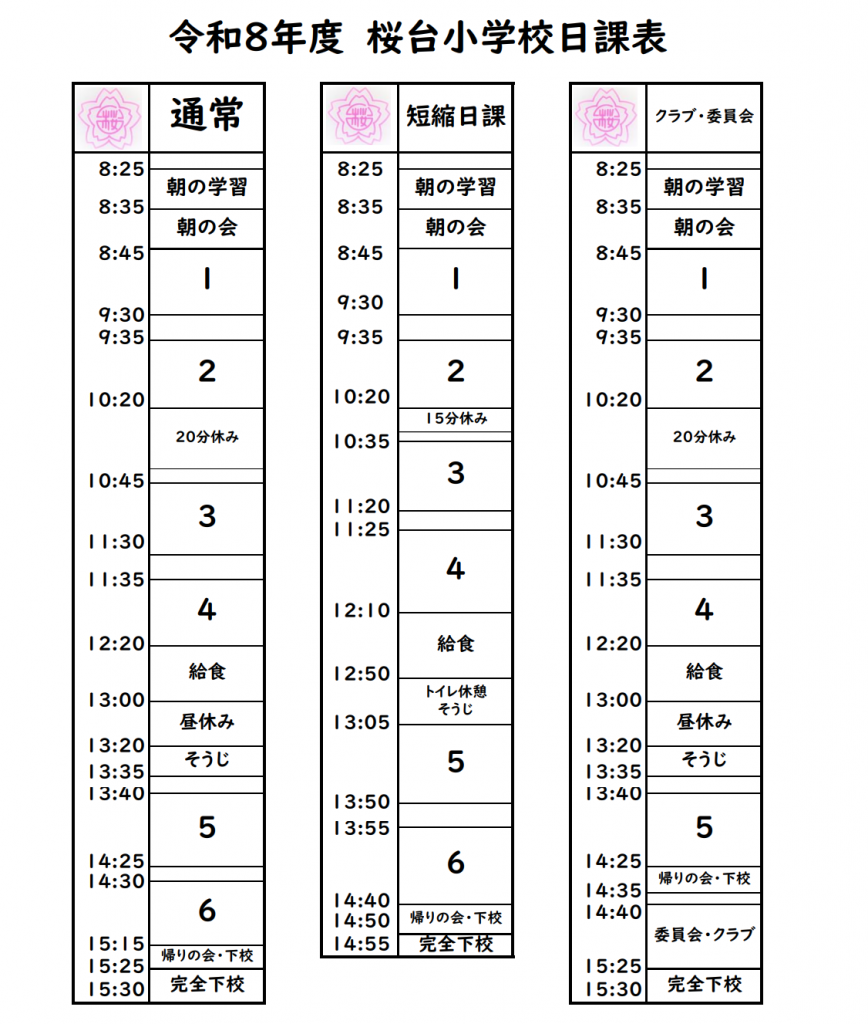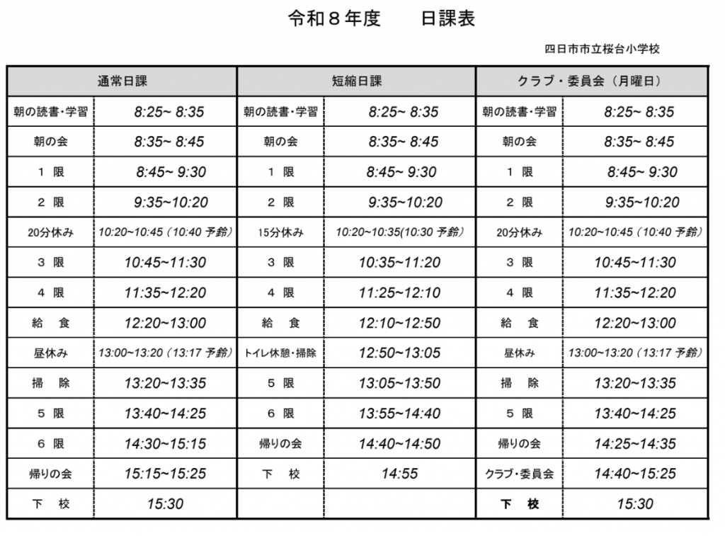 令和7年度 日課表
