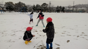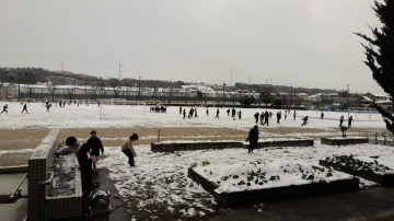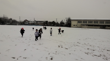 1年生は2限目の体育は「雪遊び」となり、たくさん走ってたくさん投げて楽しんでいました。