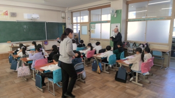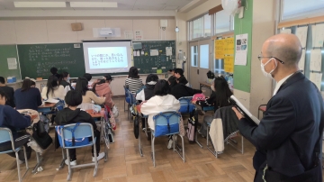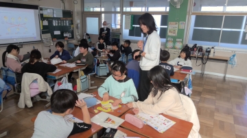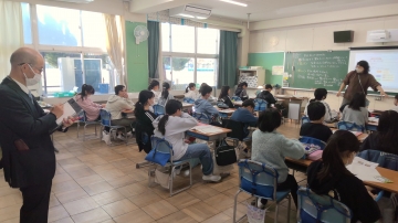 また、外国語活動の授業を1時間参観いただき、課題の設定や評価について丁寧にご指導いただきました。