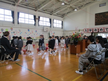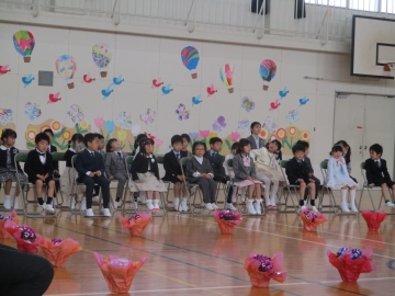 6年生代表の子どもから「とても広い運動場で元気よく遊びましょう。困ったことがあったら6年生に言ってください」と優しく温かい歓迎の言葉をもらいました。