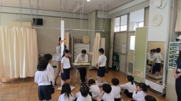 1年生は発育測定でした。養護教諭の話をしっかりと聞いて、順番にスムーズに測定することができました。視力測定を終えてからそれぞれの結果を紙に記してお渡ししますのでまたご確認ください。