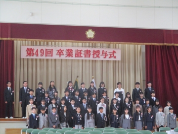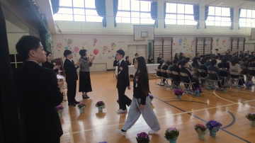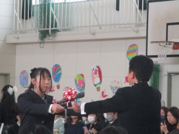 一人一人が目を合わせ卒業証書を受け取りました。その姿は中学生になる強い意識と自覚に満ち溢れていました。