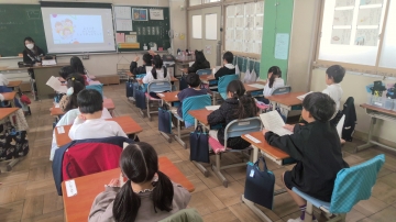 1年生は桜あおい幼稚園と桜こども園の交流に向けて、計画を立て、学校紹介の練習をしていました。