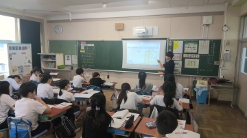 三泗音楽会も無事に終わりました。児童は、次の目標に向かってまた新たな1日が始まりました。今日の授業の様子です。多くのクラスが2学期に導入された、教室に備付けのプロジェクターを使用しています。特に算数や社会など資料や理科の実験・観察の様子を提示するときにわかりやすく効果が高いです。