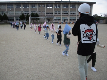 「ウー」というサイレン音に続いて「訓練、訓練、家庭室が火事になりました・・・。」という放送がなりました。