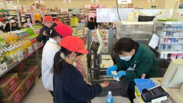 「こんなに買えると思わなかった」「あと一つくらい買えたなあ」「300円をオーバー、商品を戻してこなきゃ」・・・いろいろな声が聞こえてきました。楽しく買い物学習ができたようです。