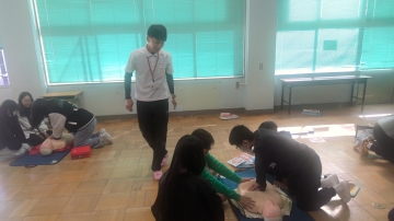 人が倒れていた場合の対応や心肺蘇生の仕方をしっかりと学びました。