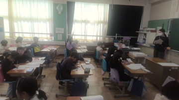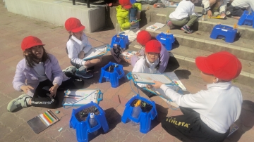 1年生は生活で「チューリップ」の観察です。毎日水を上げ世話をしています。ずいぶん芽が伸びてきました。何色の花がいつ咲くか楽しみです。