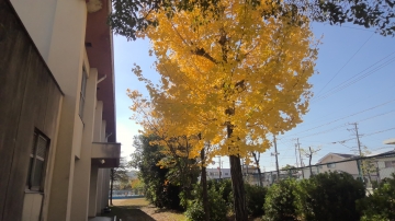 西門のイチョウが色鮮やかです。