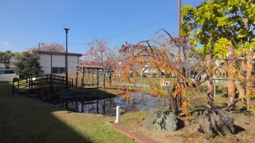 園芸ボランティアのみなさんにきれいにしていただいたひょうたん池の周りやしだれ桜も美しいです。