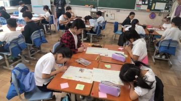 3年生は「一号館」の見学でまとめた新聞をグループで見合い、良いところを見つけコメントを書き合いました。コメントを見た子どもたちは嬉しそうでした。