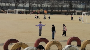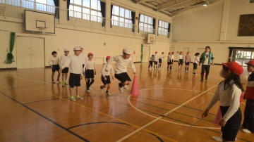 4年2組は体育の時間に八の字跳びに挑戦していました。掛け声や励ましの言葉で連続して跳べる子どもが増えました。
