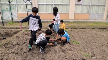 グループで協力して三種類の種をまきました。
