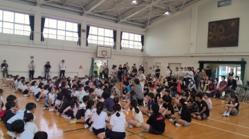 学校の代表が学校紹介をしました。広い運動場、ひょうたん池、そして「ありありなんやっ!」を合言葉にがんばっていることなど見事なスピーチでそれだけで感激しましした。