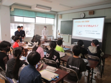 薬剤師の仕事や正しい薬の飲み方についてクイズを交えて教えていただきました。どの子も熱心にメモを取っていました。