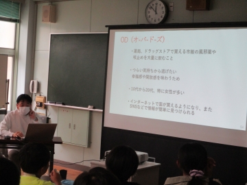 学校薬剤師の伊藤先生を講師に招き「薬物乱用防止教室」を行いました。