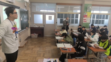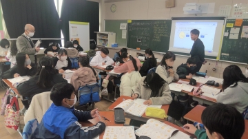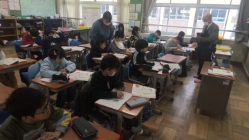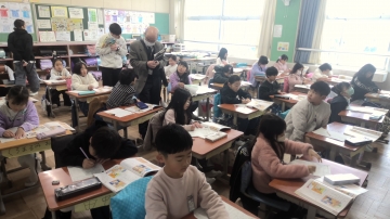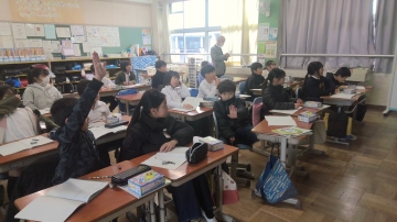 4年2組は算数や体育を観てもらいました。体育では「増え鬼」から始まり、リズムを意識した短縄、長縄の8の字の2分間跳びでした。運動量は十分です。授業後「もう少し2分間跳びをしたい。」いう子どもが多く、意欲的に取り組んでいました。