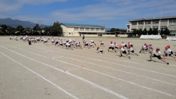 3,4年生がソーラン節を運動j場で練習を始めました。どの学年も週初めより演技を覚えてスムーズです。今後は、感情豊かに表現できるように踊りこんだり、演出効果を高めるために体形移動の練習をしたり、より踊りを高める段階へと取り組みが変わります。