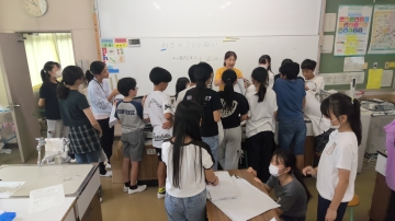 6年生は家庭科でナップサックを製作しています。ペアやグループで教え合ったり助け合ったりしながらがんばっています。