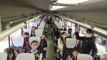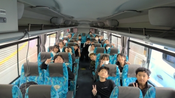 草津PAで休憩です。バス酔いもなくみんな元気です。