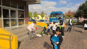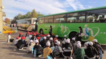 しばらくすると、1年生の子どもたちがコモノスイミングからバスで戻ってきました。最後のプールで、満足そうな顔を見せてくれました。