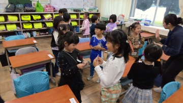 ペアになって英語で気持ちをこたえ、カードを交換するゲームも楽しそうでした。
