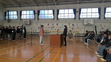 話を聞く姿も記念品を受け取る姿も立派でした。