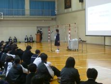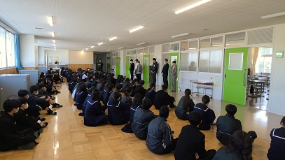 離任式では、これまで笹川中学校で生徒(せいと)の皆(みな)さんとともに過(す)ごした教職員(きょうしょくいん)から、今(いま)までの思(おも)い出(で)や保護者(ほごしゃ)の方々(かたがた)に向(む)けたお礼(れい)の言葉等(ことばなど)を一言(ひとこと)ずついただきました。