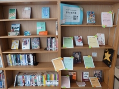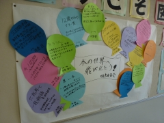 他にも、2階図書館前には「本の世界に飛び立とう」の掲示、4階オープンスペースには「図書委員会おすすめの本」の紹介と移動図書館、3階オープンスペースには「なのはな文庫」が設置されています。