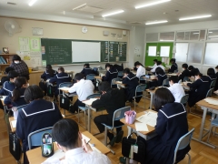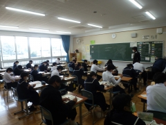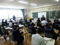 また、この授業の中で、コロナウイルス感染症拡大防止への対応のため参列できなかった「今年度の卒業式」のビデオ視聴を行いました。生徒の皆さんは、卒業式のビデオを視聴することで、2年後の自分たちのイメージを持ったようです。
