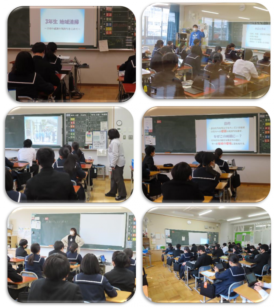 3年生では、道徳の時間に「ボランティア活動」について考えました。今まで育ててきてくれた地域や学校への思いを地域清掃・奉仕活動として伝えることにしました。