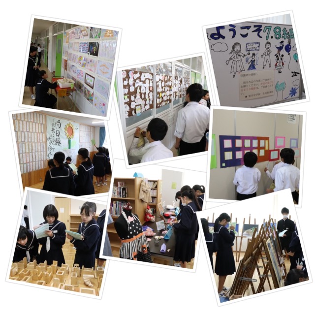 今年も、校舎内を授業や夏休みなどで作り上げた作品の数々が彩りました。見学している子どもたちも、興味津々に作品を見学していました。たくさんの保護者の方々にも起こしいただけました。