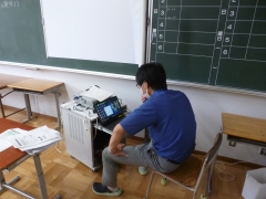 この夏休みには、各家庭へタブレットパソコンを持ち帰ります。1年生では、学活の時間を利用して、タブレットパソコンのディスクトップに夏の課題の貼り付けを行いました。